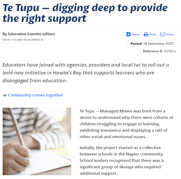 The success of Te Tupu Managed Moves has been generating a lot of media interest. While we don’t always agree with how the media chooses to frame the issues, sources are provided below for reference.