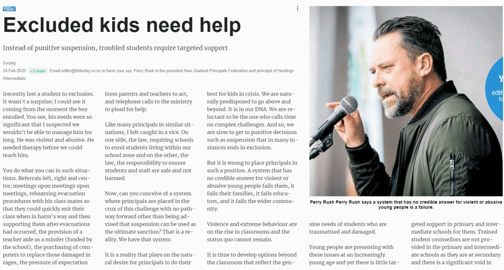 Article by Perry Rush, President of the NZ Principals’ Federation